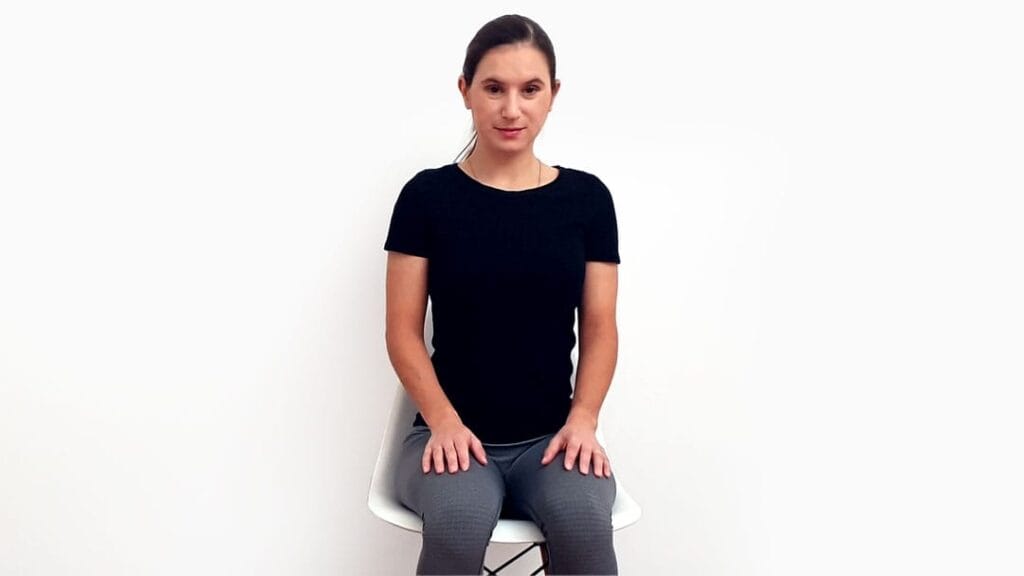 → Więcej o ćwiczeniu możesz przeczytać na: Wciąganie brody w pozycji siedzącej
