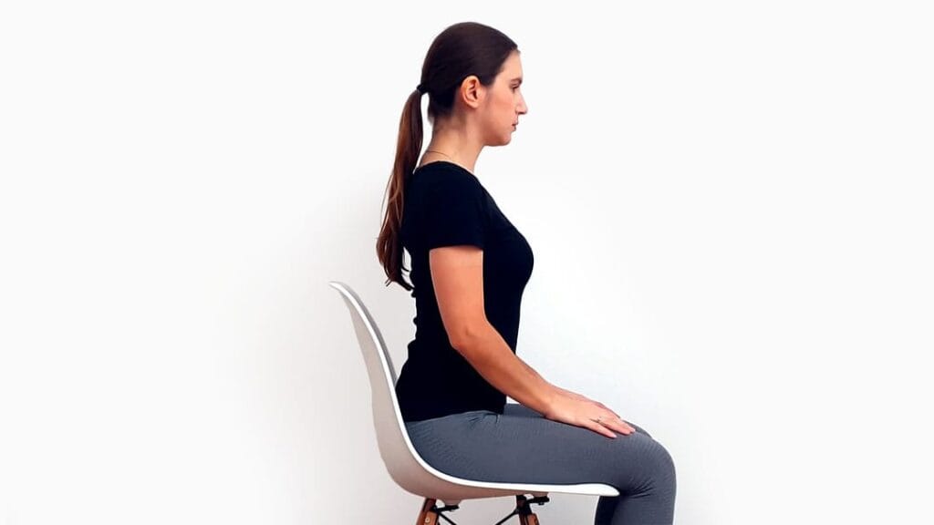 Wciąganie brody w pozycji siedzącej pomaga korygować postawę, zmniejsza napięcie w szyi i może zapobiegać bólom głowy.