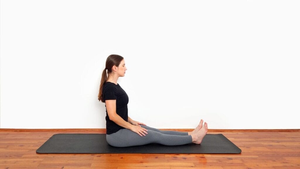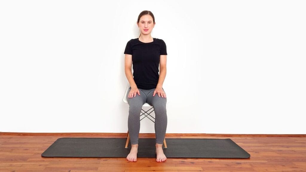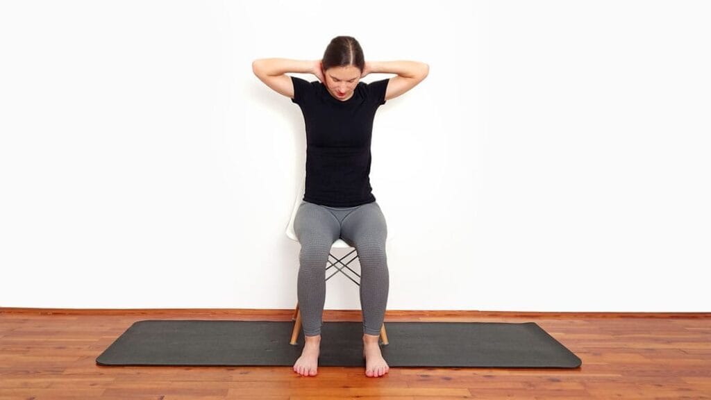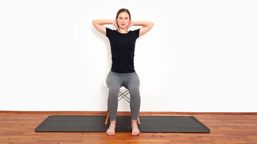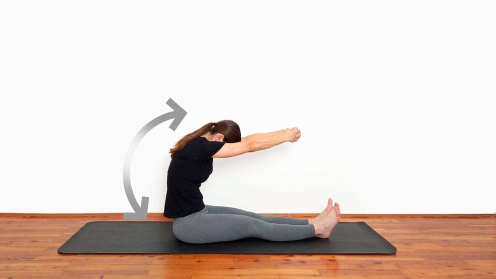 Rozciąganie romboidów w siadzie prostym pomaga rozluźnić górne plecy i poprawić elastyczność łopatek.