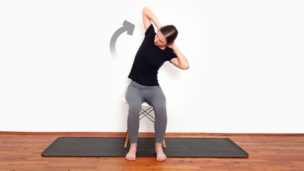 → Więcej o ćwiczeniu możesz przeczytać na: Rozciąganie romboidów w siadzie prostym
