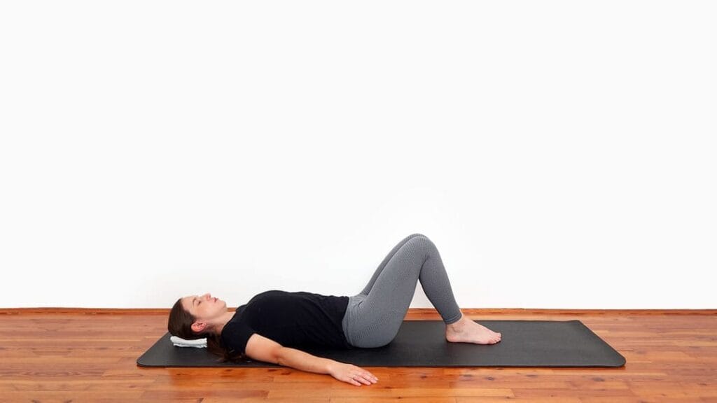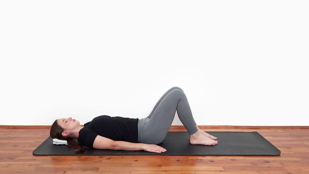 Tyłopochylenie miednicy w pozycji leżącej pomaga wyrównać ustawienie kręgosłupa, zmniejsza ból pleców i wzmacnia mięśnie głębokie brzucha.