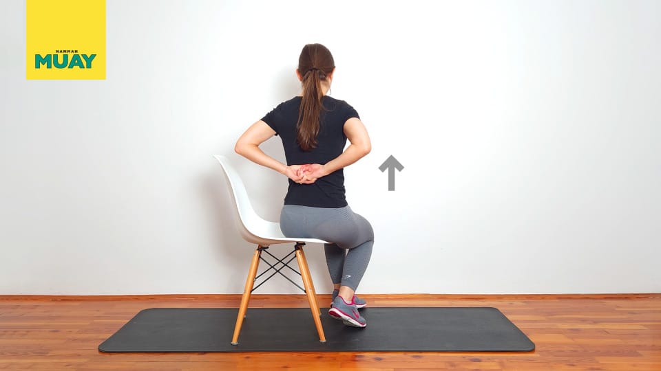 Regulacja Pleców z Rękami za Plecami to łatwy ruch. Wspomaga delikatną mobilność kręgosłupa i relaksację otaczających mięśni.